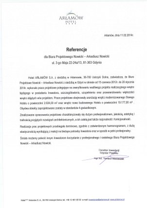 Pracownia istnieje na rynku od ponad 20 lat, realizując projekty z całego zakresu działań architektonicznych. Wykonujemy kompleksowo projekty budowlane do pozwolenia na budowę, projekty wykonawcze oraz branżowe, ale równie wielką satysfakcję sprawia nam projektowanie wnętrz i wzornictwo przemysłowe. Od 2012 roku specjalizujemy się w projektach wnętrz hotelowych. W tym czasie zrealizowaliśmy lub przekazaliśmy do realizacji ok. 2000 pokoi hotelowych. Naszą referencyjną realizacją jest projekt wnętrz hotelu, który dwukrotnie z rzędu w roku 2014 i 2015, uzyskał tytuł Poland's Leading Hotel w konkursie World Travel Awards – Hotelu Arłamów